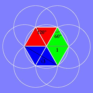 If the intersections with the center circle are connected, a hexagon is formed which is made up of 6 eqilateral triangles.
