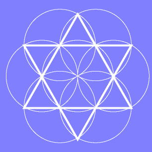 Connect the outer intersections and two opposing egilateral triangles are formed making a six pointed star.